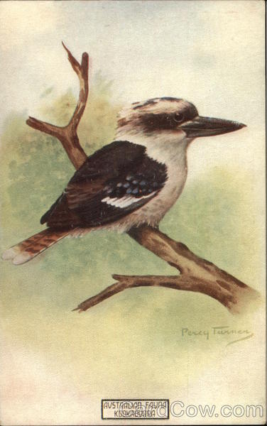 Front: AVSTRALIAN FAVOA KOOKABURRA Percy Turner Back: AUSTR AUSTRALIAN FAUNA AND FLORA SERIES. Correspondence. Address only.