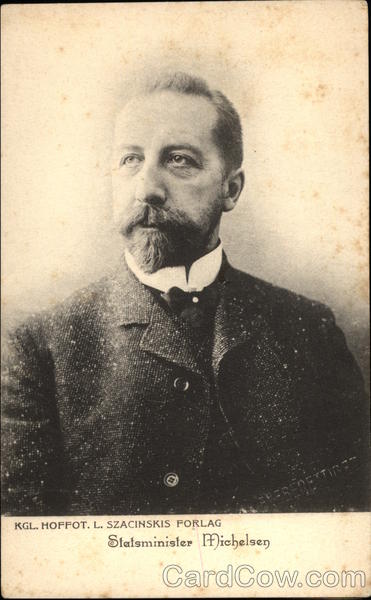 Front: (©) KGL. HOFFOT. L. SZACINSKIS FORLAG Statsminister Michelsen TTIGET Back: BREVKORT (PAA DENNE SIDE SKRIVES ADRESSEN) SKØIENS LYSTRYKKERI** ANDERSEN & SKØIEN موجی