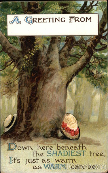 Front: A GREETING FROM Down here beneath the SHADIEST tree, It's just as warm as WARM can be. Back: B. B. LONDON. SERIES NÂș 891. PRINTED IN GERMANY. 2953 CARD