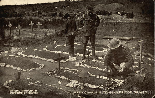 32, ARMY CHAPLAIN TENDING BRITISH GRAVES.