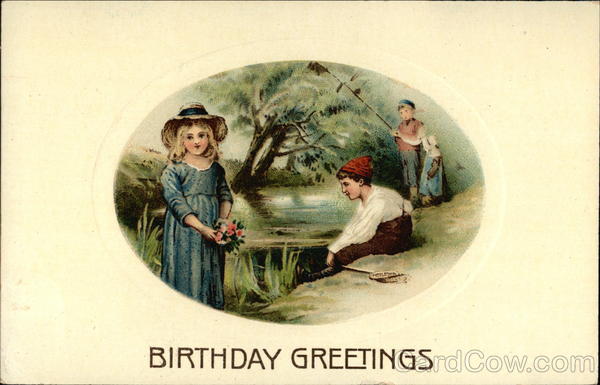 Front: NO ALESS BIRTHDAY GREETINGS Back: from Aunt Germany. 105. May Holmes may greeting for Spha, 4:00 sel Iniss Arphas. Nofistier Silveston Arigan