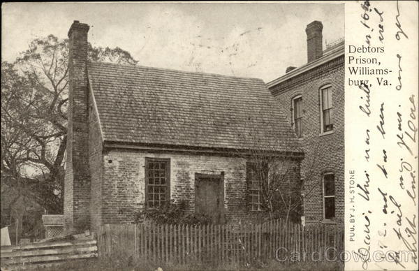 Front: PUB. BY J. H. STONE Dans, this lu 972. and has been fr fail. Или with ene. Love na burg, Va. Williams- Prison, Debtors m 160 rred ете дел Back: WPORT Post Card: 09 Miss Bellen Soff Nift Ballic Altlerne B.179 wi плаго