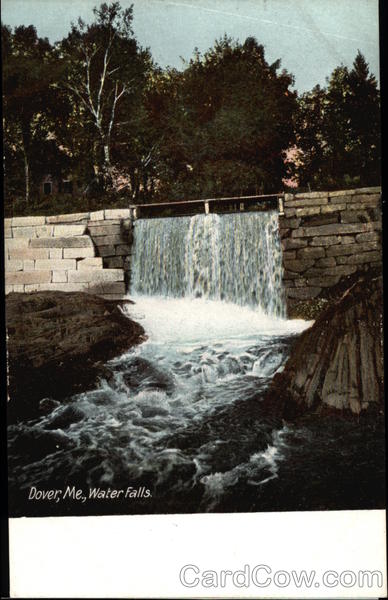 Front: Dover, Me., Water Falls. Back: THE HUGH C.LEIGHTON CO., MANUFACTURERS, PORTLAND, ME., U.S.A. FRANKFORT /MAIN, GERMANY. N 4399. лисков One Cent for United States, and Island Possessions, Cuba, Canada and шавих For Foreign. Miss Bertha & Soft