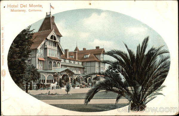 Front: Hotel Del Monte, Monterey, California. 43 3.7 2.8 8.8 82 Charles Weidner, Publisher, San Francisco. 7777 AUTO CHROM Printed in Germany. Back: 100 CARD. Place Stamp Here. 14 to United States Canada or Mexico 24 to all other Countries.