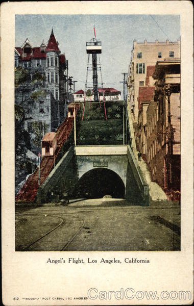 Front: 42 11 ****** "WOOD'S POST CARDS, IOS ANGELES RESKE **** Angel's Flight, Los Angeles, California Back: TAL.... Th 98 15
