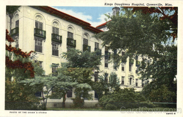 Front: Kings Daughters Hospital, Greenville, Miss. PHOTO BY THE SAUER'S STUDIO 8B442-N Back: BLACKMON NEWS CO., GREENVILLE, MISS. OSC 407