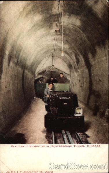 Front: ELECTRIC LOCOMOTIVE IN UNDERGROUND TUNNEL, CHICAGO No. 542. V. 0. Hammon Pub. Co., Chicago Back: FOREIGN, TWO CENTS.