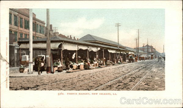 Front: COPYRIGHT 1900, BY DETROIT PHOTOGRAPHIC co. ATS 5362. FRENCH MARKET, NEW ORLEANS, LA. Back: AND CANADA, FOREIGN, Two CENTS.