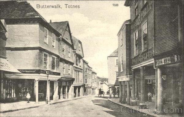 Front: 7698 Butterwalk, Totnes RES eharmacist. TRCHANT OM Back: VALENTINE'S SERIES, FAMOUS THROUGHOUT CARD. WORLD