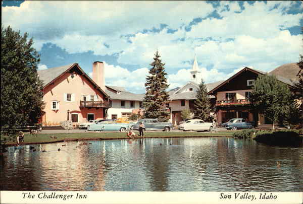 Front: The Challenger Inn Sun Valley, Idaho Back: P89945 Otto News Agency, Twin Falls, Idaho The Challenger Inn at Sun Valley, Idaho. Ducks on pond are wild mallards. golastichrome by COLOURFICTURE BOSTON, MASS. 02130