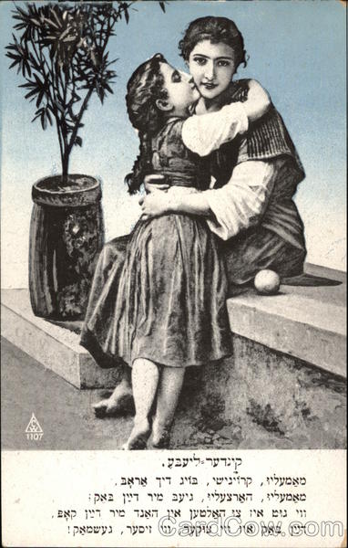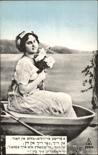 Front: 103/4 א פרישע פריהלינג-בלום אין האַנד און דיך, נאָר דיך אין זין ווי רייך, ווי שמאלץ מיט אייך באַנאַנד װי האָפֿעריג איך בין !- Back: мати см Williamsburg Art Co. New York POST CARD