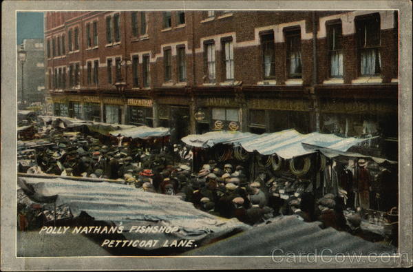 Front: DU 18 ww CREQUIS POLLY MATHAN ***** ** 8888 833 *** POLLY NATHANS FISHSHOP PETTICOAT LANE. INATHAN H Back: 1353 POST CARD