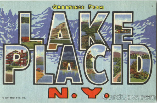 Front: GREETINGS FROM AKE PLACID N.Y. 2C H1299 © CURT TEICH & CO., INC. Back: 6. W. HUGHES & Co., INC.. MECHANICVILLE, N.Y.