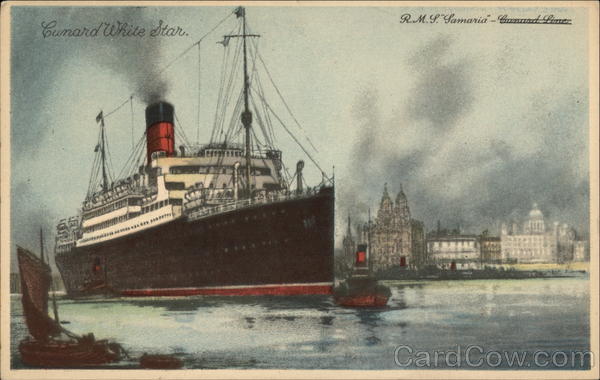 Front: Cumand White Star. 频释液接头转律系们的出版事 R.M.S."Samaria-Cumard Line DRIN 2 Back: ENGLAND IN CORRESPONDENCE. POSTAGE.