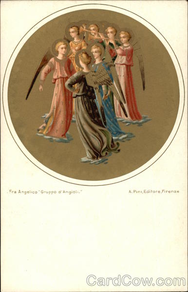 Front: Fra Angelico "Gruppo d'Angioli." 7161 A. Pini, Editore, Firenze. Back: Lithogr & Druck von Meissner & Buch, Leipzig. POSTKARTE. Carte postale - Cartolina postale - Post card. ОТКРЫТОЕ ПИСЬМО.