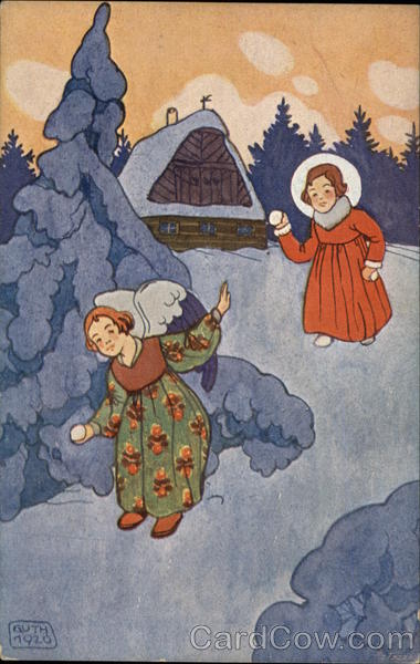 A Girl Throwing Snowballs with an Angel