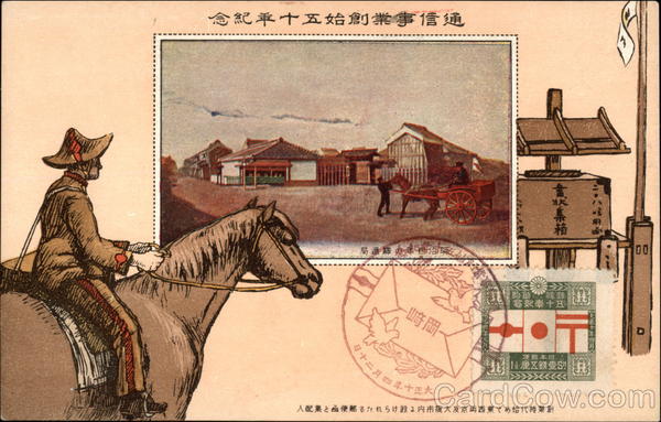 Front: 欢RN 念紀十五始創業事信通 局遞驛年四治暖 电路 治四年三月 2 十二月四十正大 人配集と函便るたれらけ設内市阪大及京両西東て代 狀集箱 二八達用面 購到 十五 6.96 便郵本日 厘区錢壹由 555558)大正十年四月2 GGGS Je 100 B Back: 切は 壹錢五厘切手 行印社會式株刷印京東 行發省信通