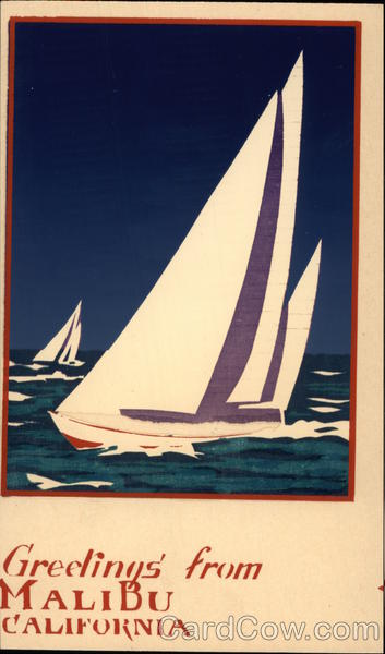 Front: Greelings from MALIBU CALIFORNIA Back: Along The MALIBU California HAND MADE Original Serigraph PUBLISHED BY M. A. SHEEHAN, TOPANGA, CALIFORNIA Post Card