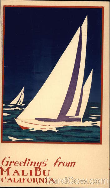 Front: Greelings from MALIBU CALIFORNIA Back: Along The MALIBU California HAND MADE Original Serigraph PUBLISHED BY M. A. SHEEHAN, TOPANGA, CALIFORNIA Post Card