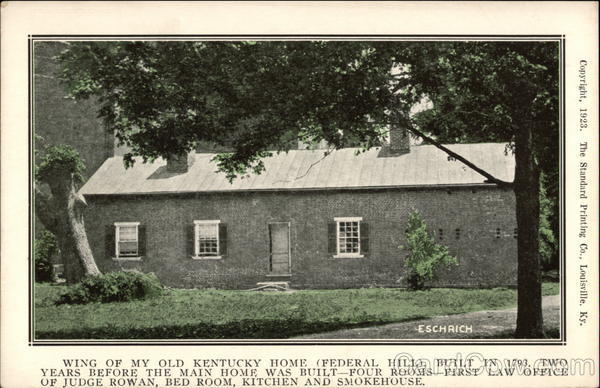 WING OF MY OLD KENTUCKY HOME (FEDERAL HILL), BUILT IN 1793, TWO