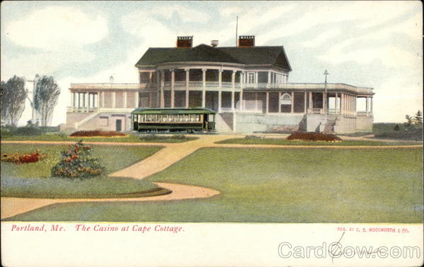Front: Portland, Me. The Casino at Cape Cottage. PUB. BY C. S. WOOLWORTH & CO. Zema Back: Place the Stamp One Cent for United States and Island Possessions, Cuba, Canada and Two Cents for 1907
