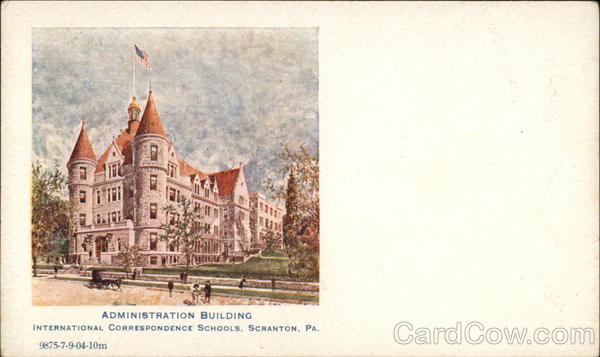 Front: 1174 ADMINISTRATION BUILDING INTERNATIONAL CORRESPONDENCE SCHOOLS, SCRANTON, PA. 9875-7-9-04-10m Back: قرار www. HERE
