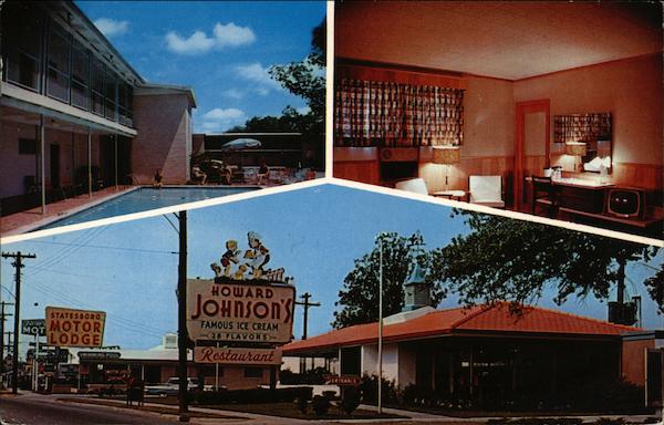 | On U.S. 301 and 25 Adjoining Howard Johnson's Restaurant In Midtown Statesboro. New and lovely with individual air-conditioning and hot water heat. Carpeted. Room phones and TV. Tile combination bath. 24 hour switchboard. Swimming pool. Phone PO 4-5631 |
