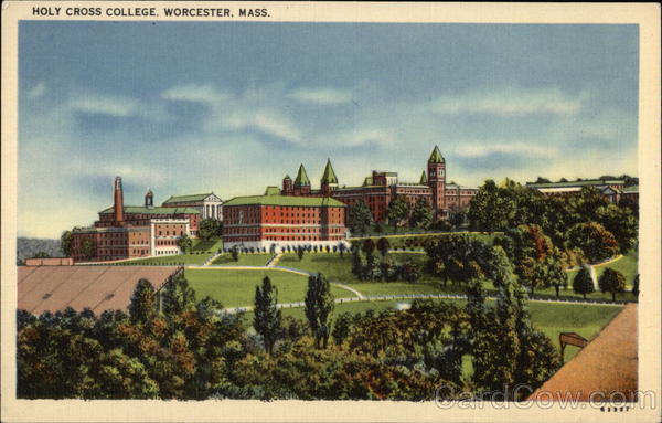 Front: HOLY CROSS COLLEGE, WORCESTER, MASS. 63327 Back: MADE IN U. S. A PUB. BY PERKINS & BUTLER, INC.. WORCESTER, MASS, "TICHNOR QUALITY VIEWS" MADE ONLY BY TICHNOR BROTHERS. INC BOSTON, MASS,
