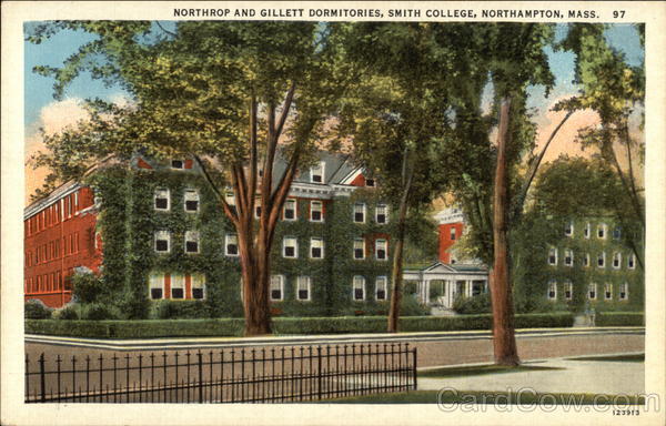 Front: NORTHROP AND GILLETT DORMITORIES, SMITH COLLEGE, NORTHAMPTON, MASS. 97 88 88 123913 Back: C. W. HUGHES & CO., INC., MECHANICVILLE, N. Y. C. T. AMERICAN ART COLORED STAR QUALITY