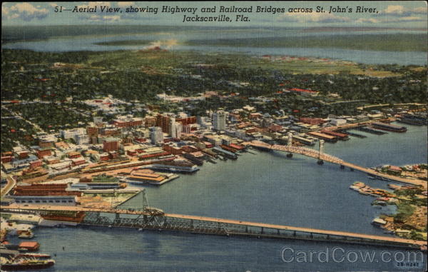51-Aerial View, showing Highway and Railroad Bridges across St. John's River,
