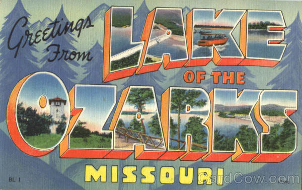 Front: Greetings Fnom OF THE MISSOUR I BL 1 17,491 Back: PUBLISHED BY BLAIR CEDAR & NOVELTY WORKS, CAMDENTON, NO. BOSTON 15. MASS.. USA -- COLOUR PICTURE PUBLICATION