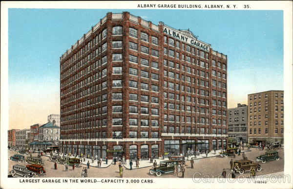 Front: 35. ALBANY GARAGE BUILDING, ALBANY, N. Y. ALBANY GARAGE BEE 111 116092 LARGEST GARAGE IN THE WORLD-CAPACITY 3,000 CARS. I口 Back: PUBLISHED BY C. W. HUGHES & CO., INC., MECHANICVILLE, N. Y. C. T. AMERICAN ART COLORED STAR QUALITY TO CHU