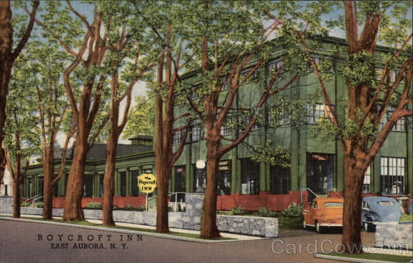 Front: Roycroft ROYCROFT INN EAST AURORA, N. Y. Back: THE ROYCROFT INN EAST AURORA, N. Y. An urban Inn of comfort and distinction On U. S. Highway 20A and Route 16 Just 18 Miles South of Buffalo, N. Y. 2C-H327 GENUINE CURTEICH-CHICAGO