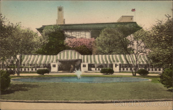 Long Island, N. Y. Entrance and Club House BELMONT PARK HANDCOLORED