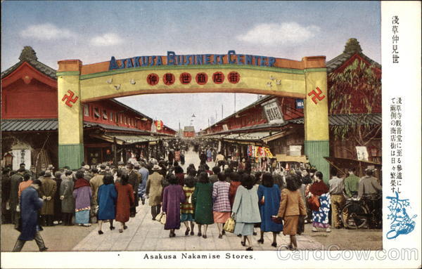 Front: SAKUSA BUSINESS C CEN 仲見世商店街 Asakusa Nakamise Stores, 23 淺草仲見世 て淺 兩草 側寺 側の商店街は日々繁 寺観音堂に至る参道に の觀 商音 店堂 は至 日る Back: Cave isod ートンボ 郵便はがき