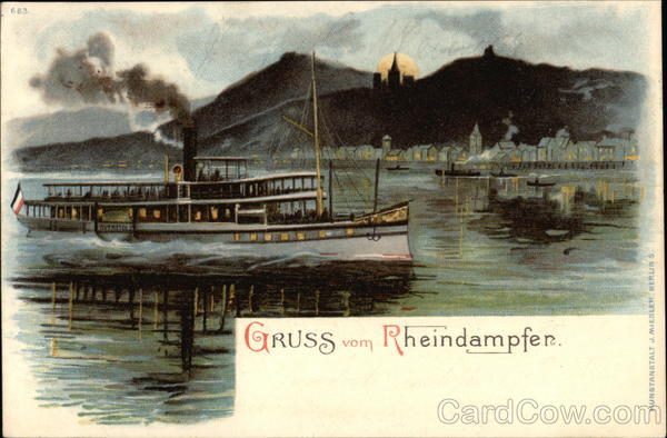 Front: 683. OVERSTOLZ KIRCLED RESTLIGE GRUSS vom Rheindampfer KUNSTANSTALT J. MIESLER, BERLIN S. Back: Un 132 5330 Frl. Helene Hahn Bann Wohnung AZ-1868-1 Deutsche Reichspost NNO (Straße Hausnummer) 31. 7.92 Bostite CHOROST