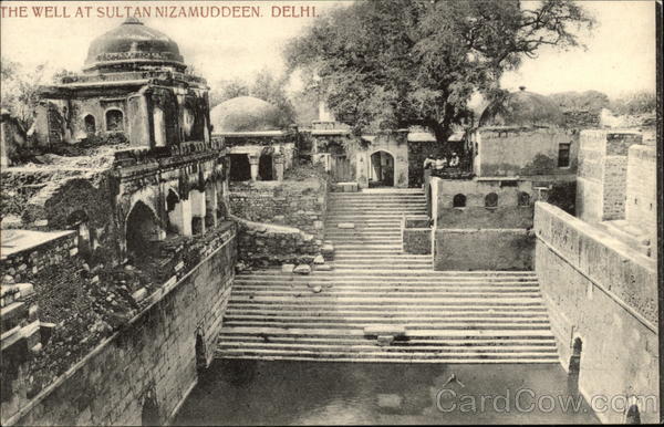Front: THE WELL AT SULTAN NIZAMUDDEEN. DELHI. Back: men dive 80 I a well. H. A. Mirza & Sons, Delhi. 9756 est into feet Ruth Minar. 16.1.09. on this side. in Germany.