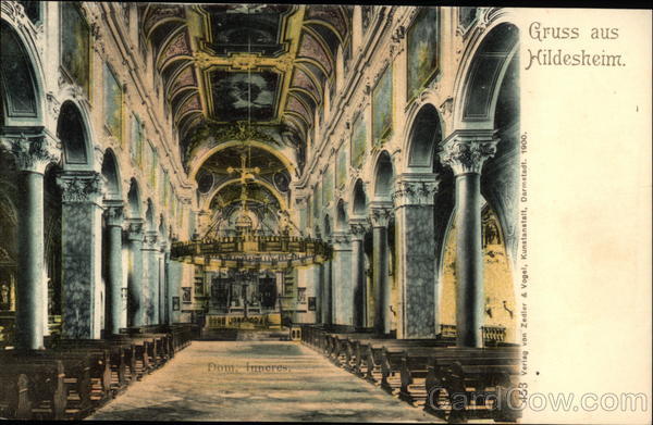 Front: Dom, Inneres. TER WIELE JALAKST DEL 453 Verlag von Zedler & Vogel, Kunstanstalt, Darmstadt. 1900. Hildesheim. Gruss aus Back: An in Wohnung (Straße und Hausnummer) Postkarte