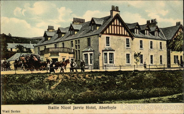 Front: Watt Series MOTOL Bailie Nicol Jarvie Hotel, Aberfoyle 10 Back: FOR INLAND POSTAGE ONLY THIS SPACE MAY BE USED FOR COMMUNICATION "Watt Series" ยน/2 d. 1 d. Printed in Saxony
