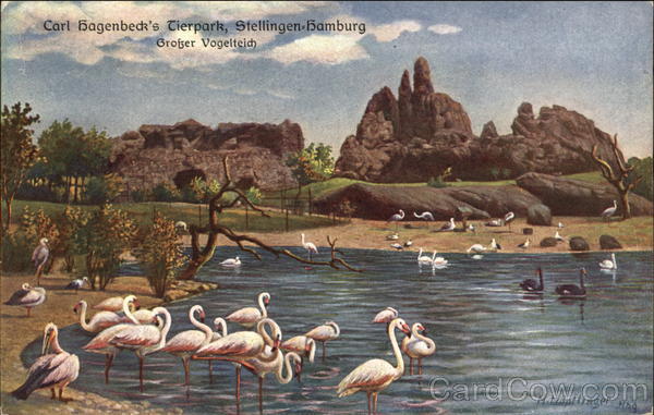 Front: Carl Sagenbeck's Tierpark, Stellingen-Hamburg Großer Vogelteich M.HABElinger Ha Back: Carl Hagenbeck's Tierpark Stellingen-Hamburg 'uajoga a pnIqipv_zvj1a qun unship 5 PaquabbG LIDD