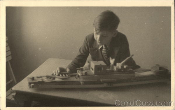 Boy Playing with Toy Boat