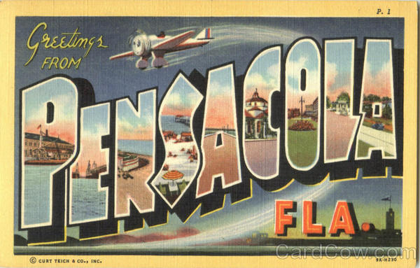 Front: P. 1 Greedig s FLA CURT TEICH & co., INC. 9A-H230 Back: PENSACOLA NEWS AGENCY, PENSACOLA, FLA.