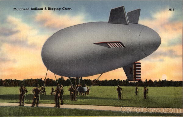 Front: Motorized Balloon & Rigging Crew, M15 Back: MILITARY SERIES 20 SUBJECTS 69730 "TICHNOR QUALITY VIEWS" REG. U.S. PAT, OFF. MADE ONLY BY TICHNOR BROS., INC., BOSTON, MASS. MADE IN U. S. A