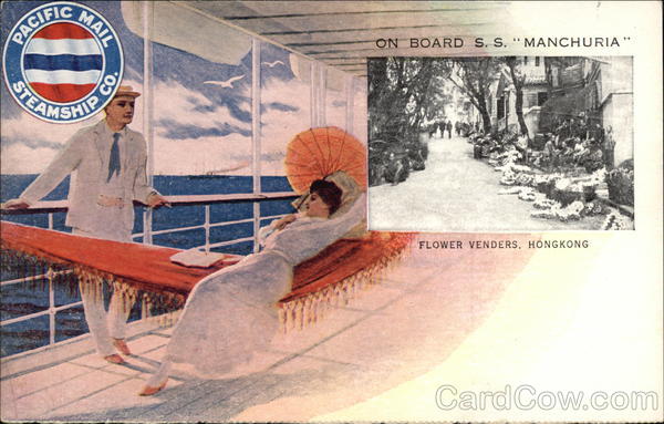 66 MAIL ON BOARD S. S. “MANCHURIA" PACIFI SHIP STEA FLOWER VENDERS, HÔNGKONG CO.