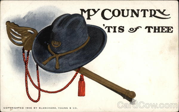 Front: MCOUNTR TIS of THEE (CAR) COPYRIGHTED 1906 BY BLANCHARD, YOUNG & co. Back: PUBLISHED BY BLANCHARD, YOUNG & CO., PROVIDENCE, R. 1., U. S. A., AND LEIPZIG, GERMANY. Grace
