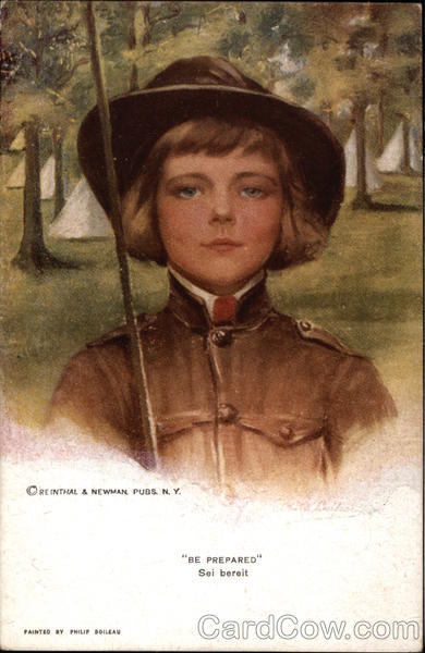 Front: RE INTHAL & NEWMAN. PUBS. N. Y. "BE PREPARED“ Sei bereit PAINTED BY PHILIP BOILEAU Back: EL Universal Copyright No. 750