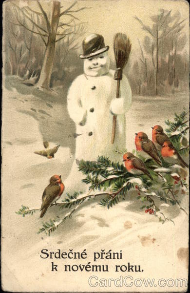 Front: Srdečné přáni k novému roku. Back: del ČESKOSLOVENSKÁ nada 50 HALERŮ 50 * NE 03 J.XII. 15 Chania Toibova Kostelec Sheena nool . Noru. Good sope. en Mjordenre et Belopment Jefove'mte wku decu Gribla vom verly halla 15521