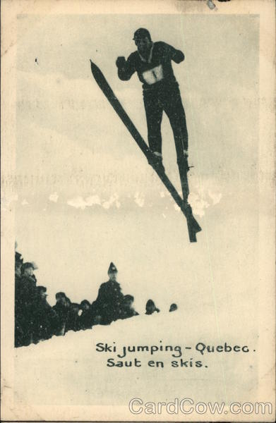 Front: Ski jumping- Quebec. Saut en skis. Back: MADE IN This space may be used for Communication frem i notogelatine Engraving Co. Ltd., Ottawa