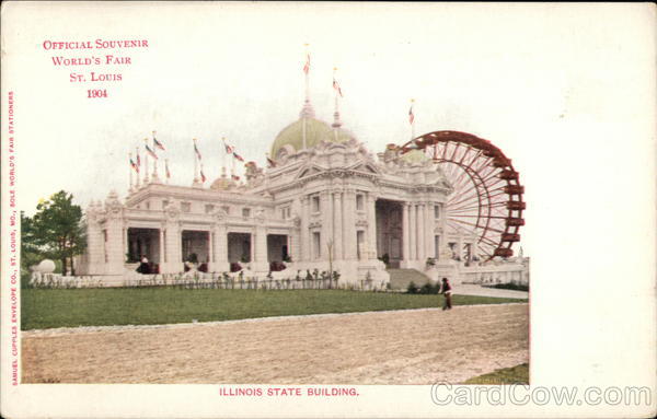 Front: OFFICIAL SOUVENIR WORLD'S FAIR ST. LOUIS 1904 ILLINOIS STATE BUILDING. SAMUEL CUPPLES ENVELOPE CO., ST. LOUIS, MO., SOLE WORLD'S FAIR STATIONERS Back: UNITEDSTATES AND CANADA, FOREIGN, Two CENTS.