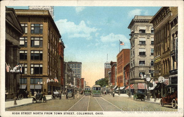 Front: af Mrs. ****** HIGH STREET NORTH FROM TOWN STREET, COLUMBUS, OHIO. TO OP 410121- IRI 131 Back: ICAN SLICAGE A-53433 AND ISLAND POSSESSIONS, CUBA, CANADA AND MEXICO FOR FOREIGN